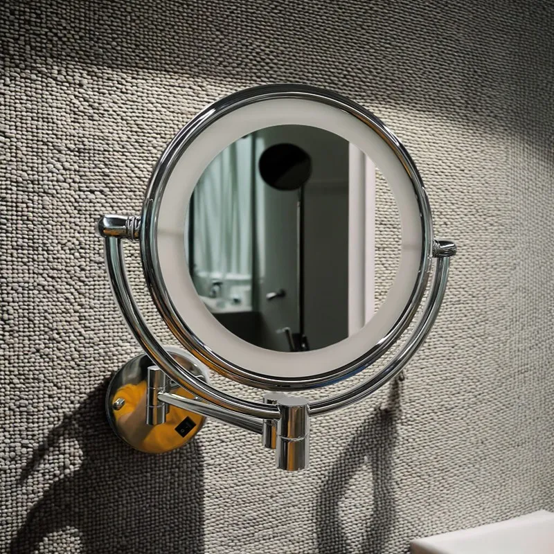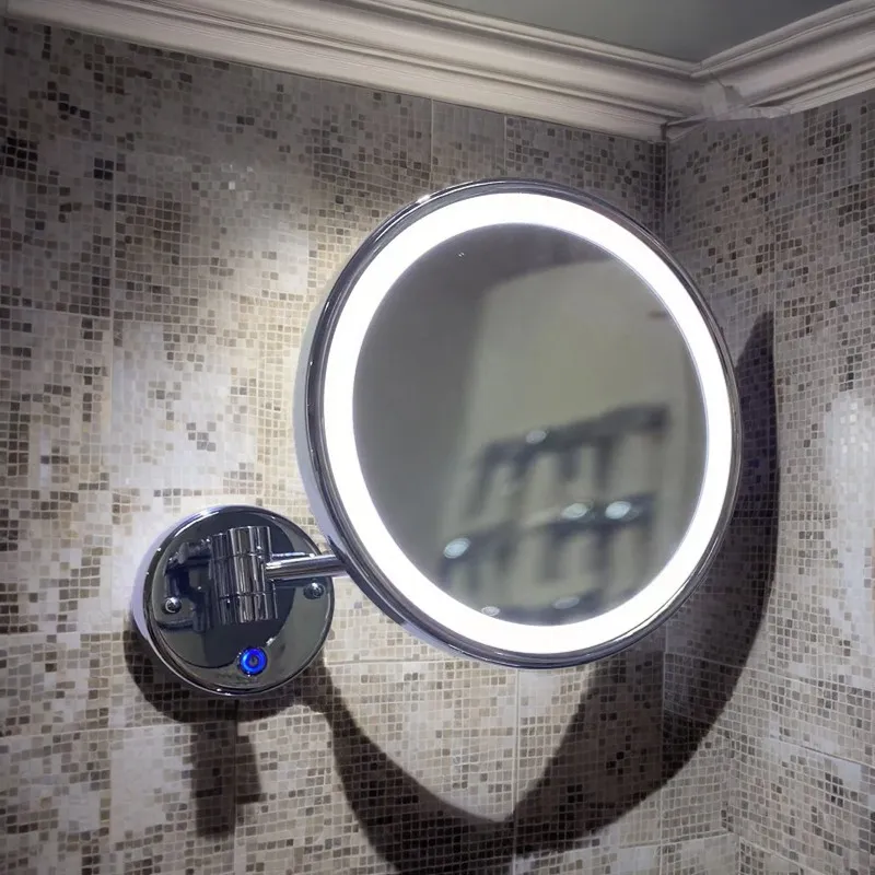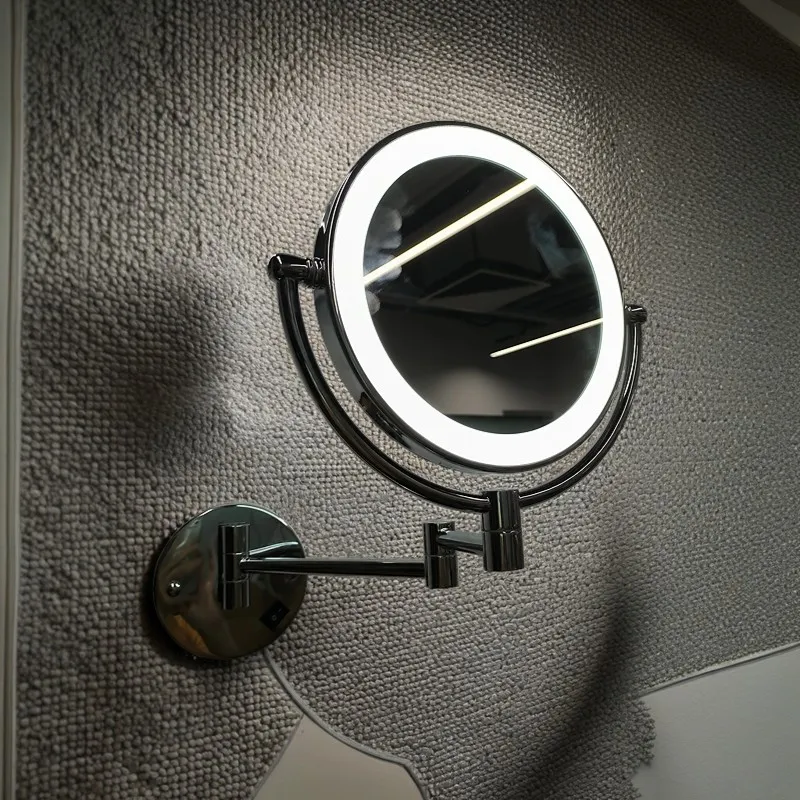 Material: chrome copper+chrome stainless steel with 2mm third-generation eco-friendly glass; CE certified driver, base conventional switch, full mirror power 3 watts; Double-sided mirror (3x magnifying glass + flat mirror); Support concealed installation.